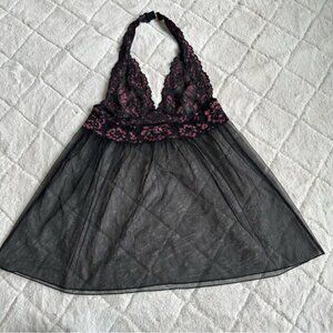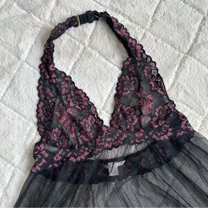 Victoria's Secret | Silver Label Black Chiffon Floral Babydoll | Size Medium