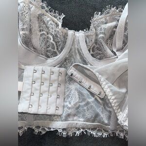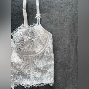 Victoria’s Secret Silver Lace Corset Bustier Underwire 32C Grey gray beaded 32 C