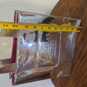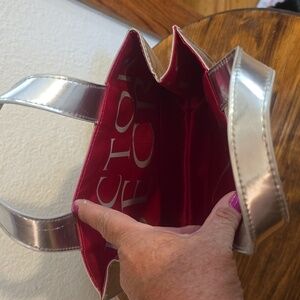 Victoria's Secret Silver Metallic SMALL tote Bag RED satin interior Mod & Sassy!