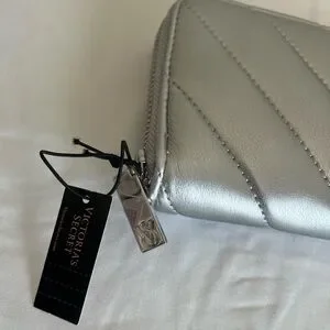 Victoria's Secret Silver Quilted Large Wallet with Zip Closure