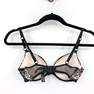 Victoria's Secret Size 32C Bra Very Sexy Push Up Black White Satin Floral Wire