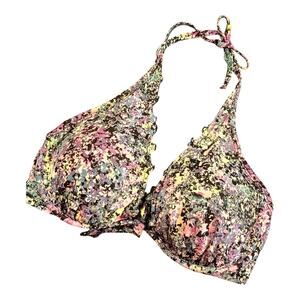 Victoria's Secret Size 34DD Underwire Pink Blue Sparkle Ruffled Halter Swim Top