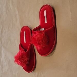 Victoria’s Secret Size M Red Slide On Slippers with Fuzzy Pom Pom, NWOT. Fun, Flirty and Sexy! Amp up your Christmas Eve Night with these Cozy Slippers! New without tag. Never Worn.