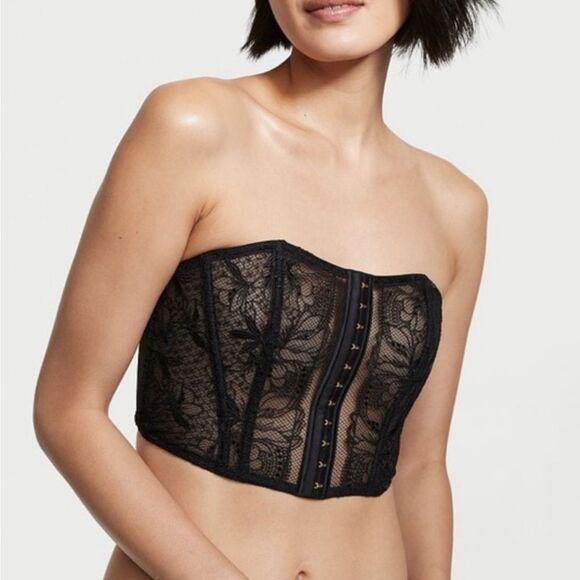 Victoria’s Secret Size M Strapless Corset Tank Top Black Lace Mesh Crop New