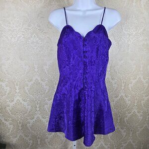 Victoria's Secret Size P Purple Jacquard Chemise Adjustable Straps Button Front