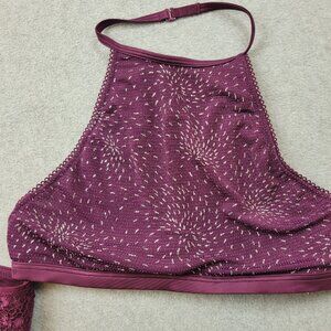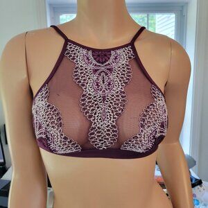Victoria's Secret Size Small High Neck Lace Bralette Burgundy Red Lace Shimmer