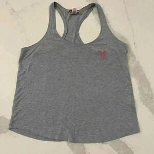 Victorias Secret Sleeveless Racerback Gray Tank Top Heart Love Pink Womens Small