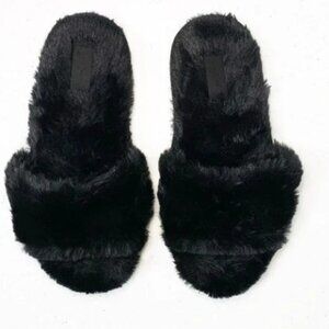 Victoria's Secret Slide Slippers Black Faux Fur Medium 7-8 New in bag