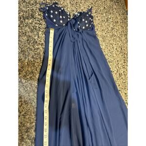 Experience the timeless elegance of a Victoria's Secret Slip Dress, a perfect blend of classic design and intimate charm. This medium-sized, blue chemise features exquisite lace detailing and an alluring plunge neckline that complements the embroidered accents, creating a stunning piece for any season. The sleeveless silhouette and tie closure offer a secure and flattering fit, while the Polyester material ensures comfort and durability.
