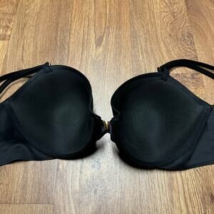 Victorias Secret Solid Black Lined Demi Bra Size 34DD Gold V Multi-way Straps