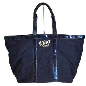Victoria's Secret Sparkle Large Black Weekender Zippered Tote Bag