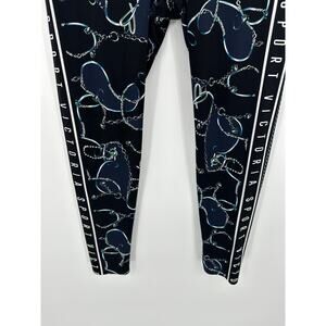 Victoria's Secret Sport Leggings Women MEDIUM Black Printed Knockout Activewear