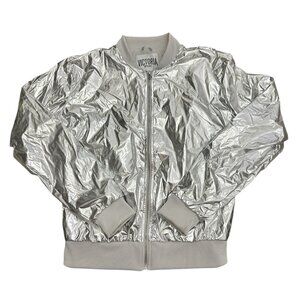Victoria's Secret Sport Metallic Silver Bomber Jacket Women’s Size XS Y2K