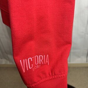 Victoria's Secret Sport Red Pullover Sweatshirt Keyhole Open Back High Low Sz XS, 47% polyester, 47% viscose, 6% elastane. This sweatshirt is in excellent condition and is lined in fleece. There is a logo on the sleeve.