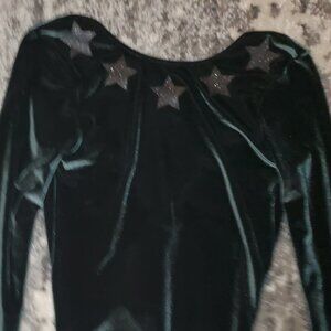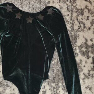 Victoria's Secret Sport Star Glitter Bodysuit Green Velour Large Leotard