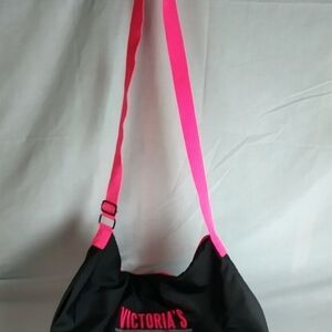 Victorias Secret Sport Zip Duffle Gym Bag Hot Pink Black,Adjustable Strap *