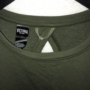 Victoria’s Secret Sport pullover sweatshirt olive green sexy open back XS loose