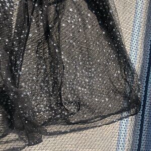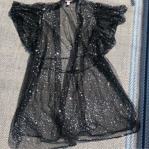 EUC worn like once Victoria’s Secret glitter Star sheer robe kimono with ruffle sleeve. It does shed some glitter lol. The size is medium-large.