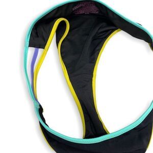 Victoria's Secret Strappy Cheeky Bikini Bottom in black with yellow, teal and purple accents.