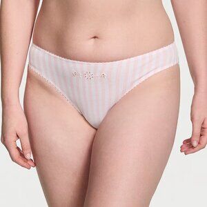 Victoria's Secret Stretch Cotton Bikini Panty Pink Stripes Medium NEW