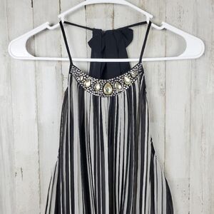 Victoria's Secret Striped Bead Embellished Tank Top Black and White.