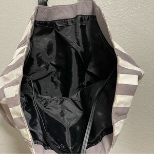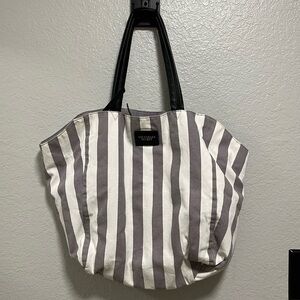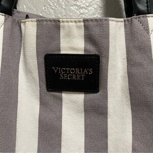 Victoria’s Secret Striped Canvas Tote Gray White Beach Travel Weekender Bag