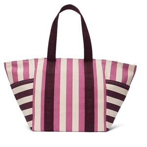 Victoria's Secret Striped Carry On Large Canvas Zipper Beach Tote NEW MSRP $49