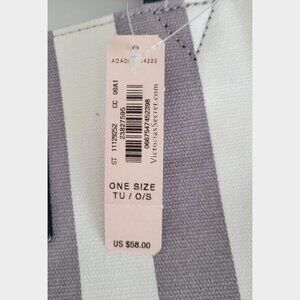 Victoria's Secret Striped Gray White Weekender Bag Travel Canvas Large Tote New