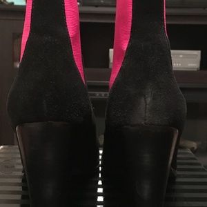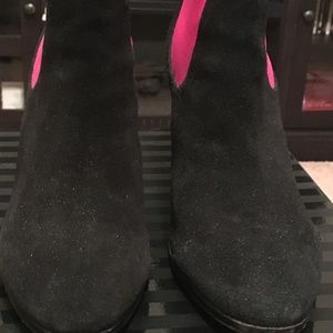 Used - Victoria's Secret Suede Leather Ankle Boots, Chunky Wedge Heel, Pink & Black, Size 9