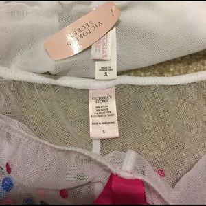 Meshed exclusive of trims of embroidery. Pretty hot pink ribbons!