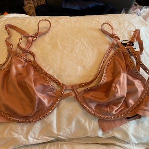 Victoria’s Secret Swarovski Crystal Pink satin w/crystals Bra and garter set NWT