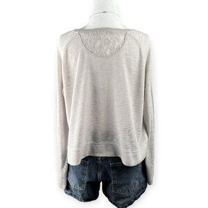 Soft and subtly feminine, this Victoria’s Secret long sleeve pullover blends laid-back comfort with delicate detail. The lightweight knit in a creamy gray tone is breathable yet cozy, while floral lace accents on the front and back neckline add a pretty, romantic touch. An easy throw-on with jeans, skirts, or leggings.