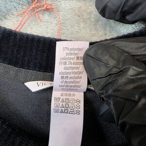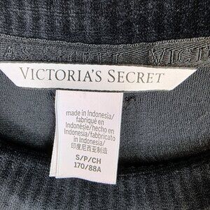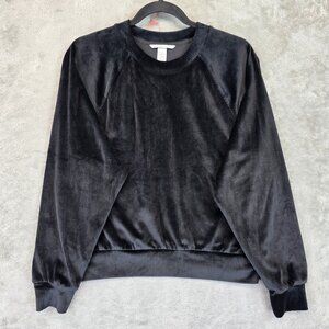 Victoria's Secret Sweater Womens Small Black Velour Ribbed Pullover Soft Crewneck