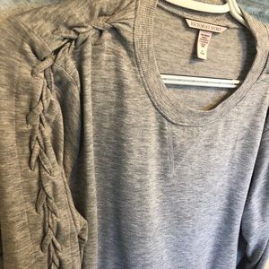 Light gray sweatshirt, but very light material, either sides have braiding but can be pulled apart to create more room, worn a few times, no rips or stains