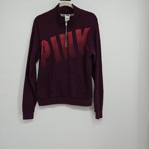 Victoria's Secret PINK Sweater Women's Red Burgundy Zip Pullover Sweatshirt
