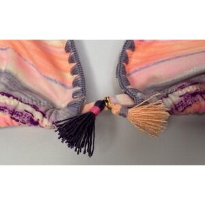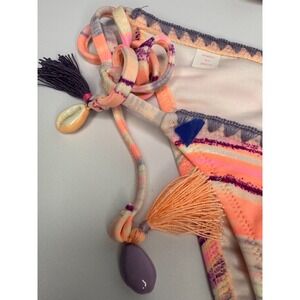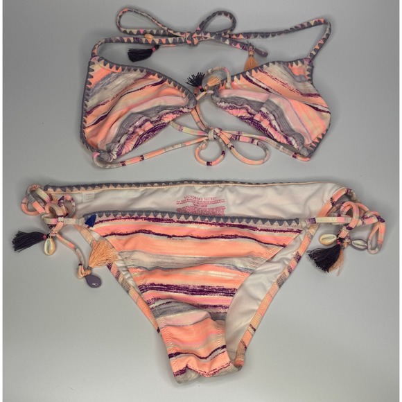 Victorias Secret Swim Bikini Set Halter Top Seashell Tassel Size Medium Striped