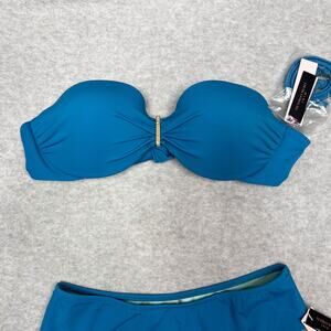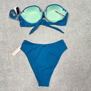 Victoria's Secret Swim Blue Bandeau Top High Cut Bottoms Bikini Size 32C/ Small