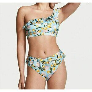 Victoria's Secret Swim Ruffle High-Waist Cheeky Bikini Bottom Blue Lemon