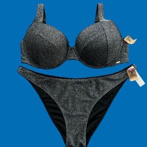 Victorias Secret Swim Shimmer Push up Padded Bikini top & Bottom Set Gray XXL