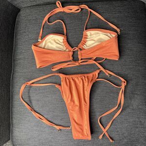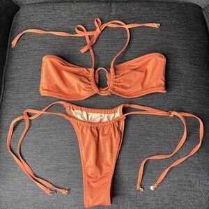 Victoria's Secret Swim Suit 2 Piece Skimpy String Bikini Small Pumpkin Metallic