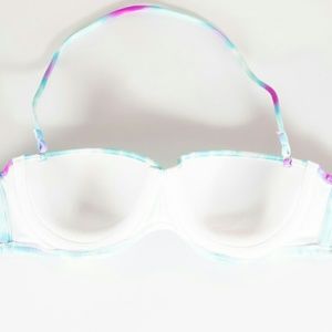 Colorful designed Victoria's Secret Swim Top. The strap can come off to make this a strapless swim top. There is a metal clasp on the back.
