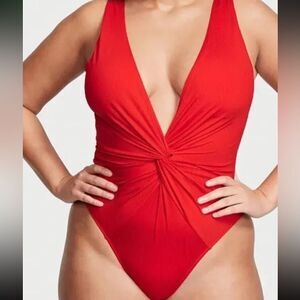 Victoria's Secret Swim Twist Plunge One-Piece Swimsuit medium NWT Red