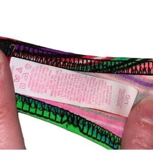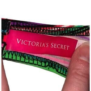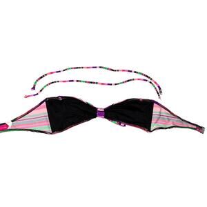 This Victoria's Secret bikini top is a must-have for any beach day or pool party. The striped pattern and multicolor design make it a stylish addition to any swimwear collection. The strapless style and padded bust provide comfort and support while swimming or sunbathing.