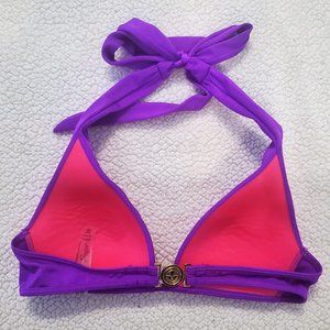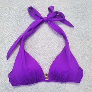 Purple Victoria's Secret bikini top size extra small. Top is lightly padded, no pushup. Neck ties and clip in back.