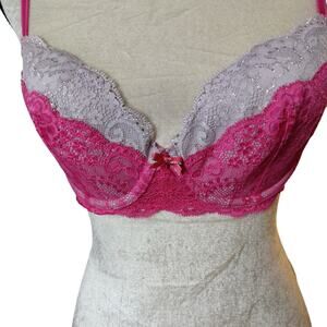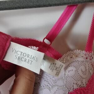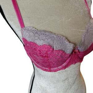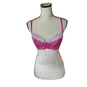 Victoria's Secret size 34C bright pink lace demi bra. Dream Angels. Very good condition, light wear. Adjustable straps. Underwire.