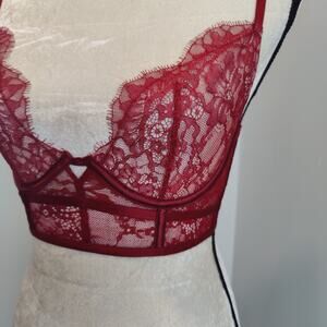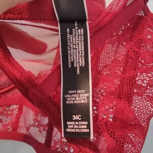 Victoria's Secret Sz 34C Very Sexy Unlined Demi Red Lace Bra Longline Corset