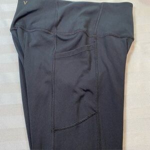 Victoria’s Secret Sz 4 Leggings 3 pockets High Rise Black Yoga Gold V Logo EUC