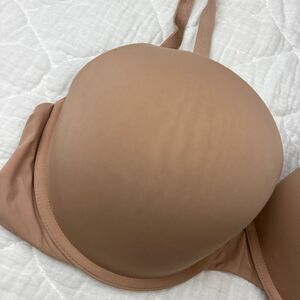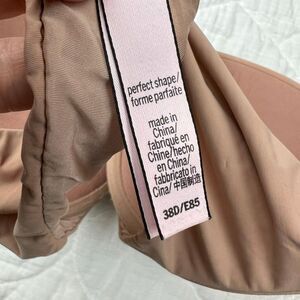 Keywords: Victoria's Secret, T-Shirt Bra, 38D, beige, lightly lined, adjustable straps, full coverage, underwired, hook & eye, women's bra, everyday wear, comfortable bra, pre-owned bra, versatile bra.