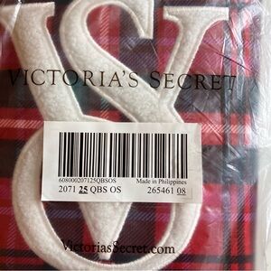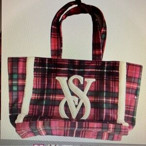 Limited Edition Victoria's Secret Tartan Plaid Holiday Tote with Faux Fur Sherpa Trim, VS logo on Front oversized tote.
