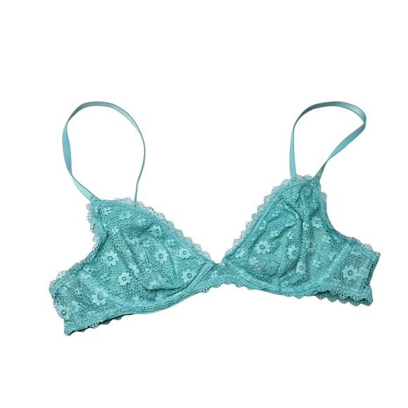 Victoria's Secret Teal Aqua Lace Lightly Lined Bralette Sz Medium Bra No Padding